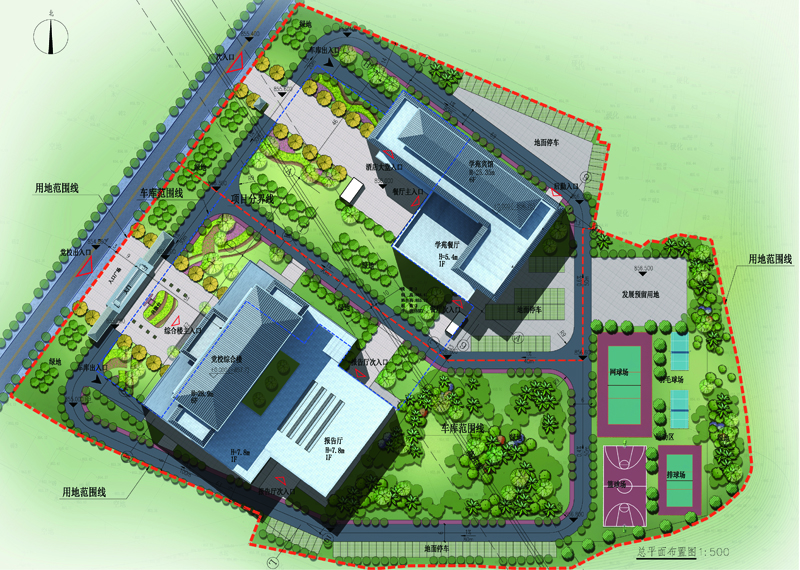 黨校新校區(qū)項(xiàng)目選址于桃花源街道東流口村4組(小地名:五家灣),距離現(xiàn)黨校有11.8公里,項(xiàng)目用地面積為48.5畝?偨ㄖ娣e:25613.00m2(其中綜合樓建筑面積:11871.00m2,學(xué)苑賓館建筑面積:13742.00m2),設(shè)計(jì)綜合樓1棟、學(xué)苑賓館1棟、地下車庫、大門,能滿足培訓(xùn)、辦公、會(huì)議、就餐和住宿等功能。