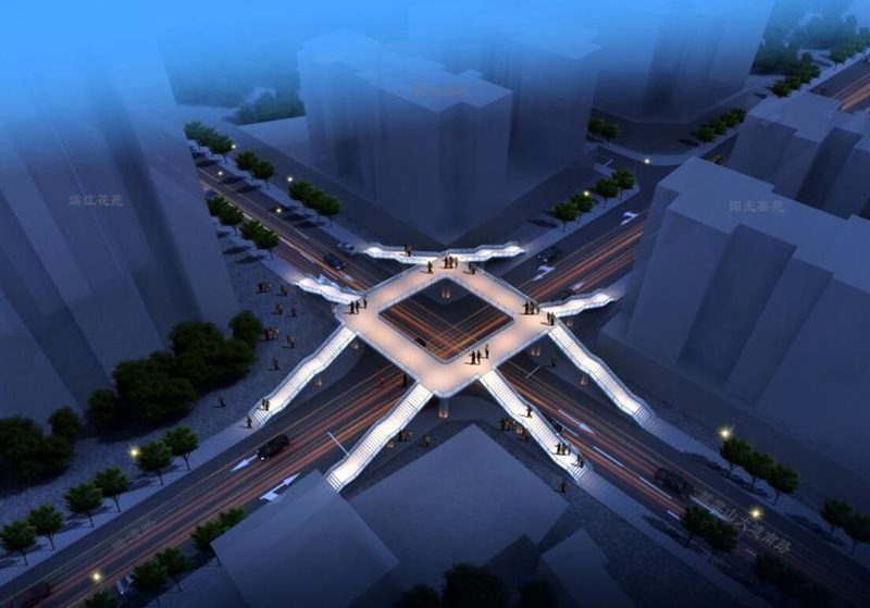 酉陽縣過街人行天橋(一期)項目:(1)鐘多小學(xué)人行天橋采用“菱”形平面布置,天橋主梁寬度4.2m,凈寬4.0m;梯道寬2.5m,凈寬2.3m;在梯道兩級休息平臺均設(shè)置梯道墩,梯道下設(shè)置管理用房;(2)民族小學(xué)人行天橋:天橋采用“H”形平面布置,天橋主梁寬度4.2m,凈寬4.0m;梯道寬2.6m,凈寬2.4m;在梯道兩級休息平臺均設(shè)置梯道墩,梯道下設(shè)置管理用房;(3)酉州小學(xué)人行天橋:天橋采用“工字型”天橋全長13.1m,橋面橫向全寬3.2m,凈寬3.0m;梯道寬2.0m,凈寬1.8m,每18級臺階設(shè)置休息平臺。本工程于2018年10月19日開工建設(shè),2019年10月16日完成全部工程建設(shè)。