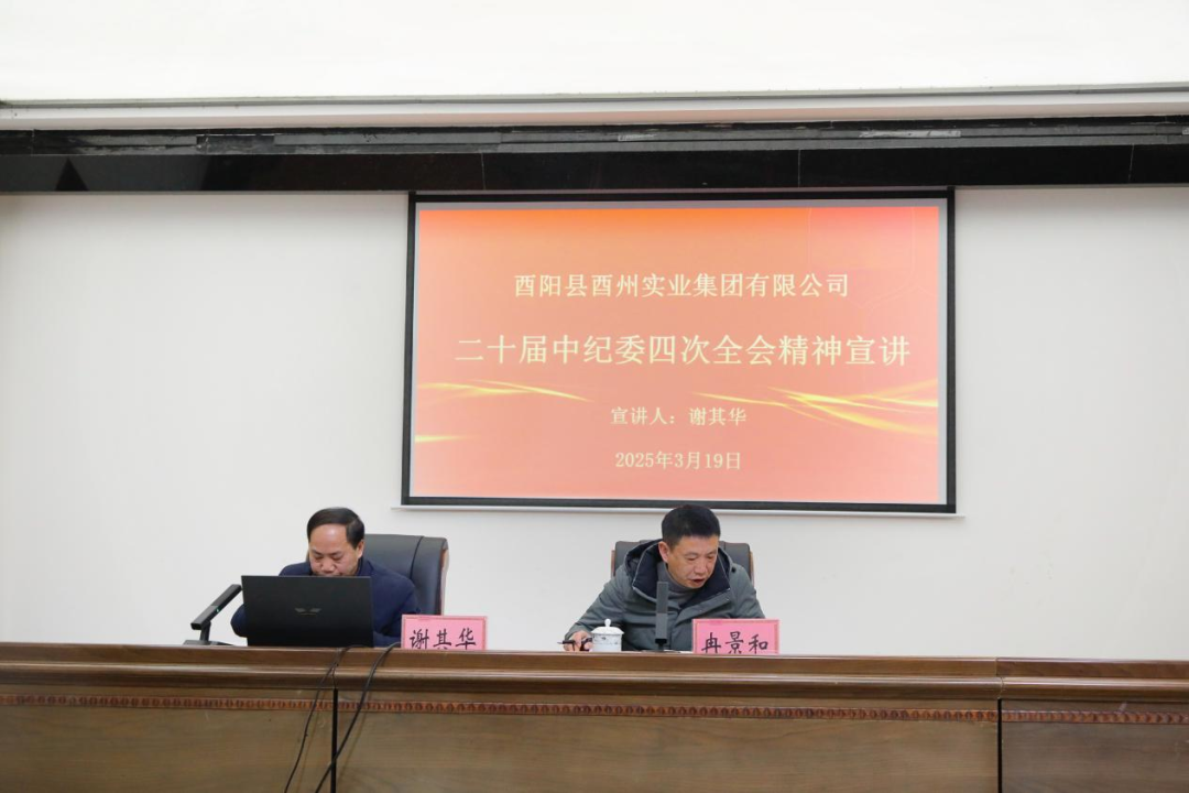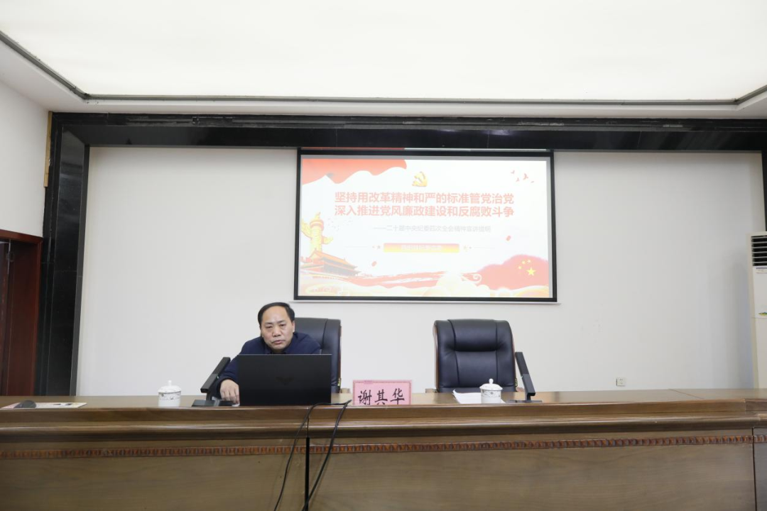 【3月20日訊 楊宜霖】 為深入學習宣傳貫徹二十屆中紀委四次全會精神,教育引導集團全體黨員干部深入理解、全面把握其精神實質和核心要義。3月19日上午,集團按照縣紀委統(tǒng)一部署,舉行二十屆中紀委四次全會宣講?h紀委派駐財政局紀檢監(jiān)察組組長謝其華作專題宣講,集團領導班子、中層副職以上干部、全體黨員參加會議。