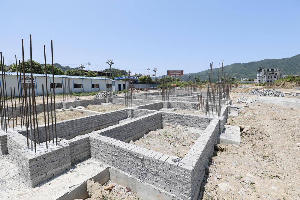 已完成房屋結(jié)構(gòu)基礎(chǔ)澆筑回填9個(gè)組合(19戶);另墊層已澆筑20個(gè)組合(50戶);鋼筋制作完成5個(gè)組合(11戶),支模進(jìn)行中。磚砌基礎(chǔ)3個(gè)組合(7戶);以及小區(qū)道路路基換填完成和市政道路換填路基、壓實(shí)、路基挖方。